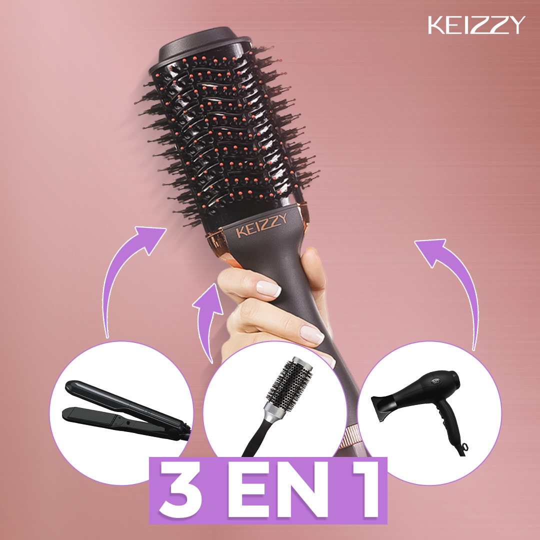 Dile adiós al secador de pelo, la plancha, el cepillo y las costosas visitas a la peluquería. El Cepillo Secador Rose Gold Keizzy seca, peina y alisa tu cabello en tan solo unas pasadas.